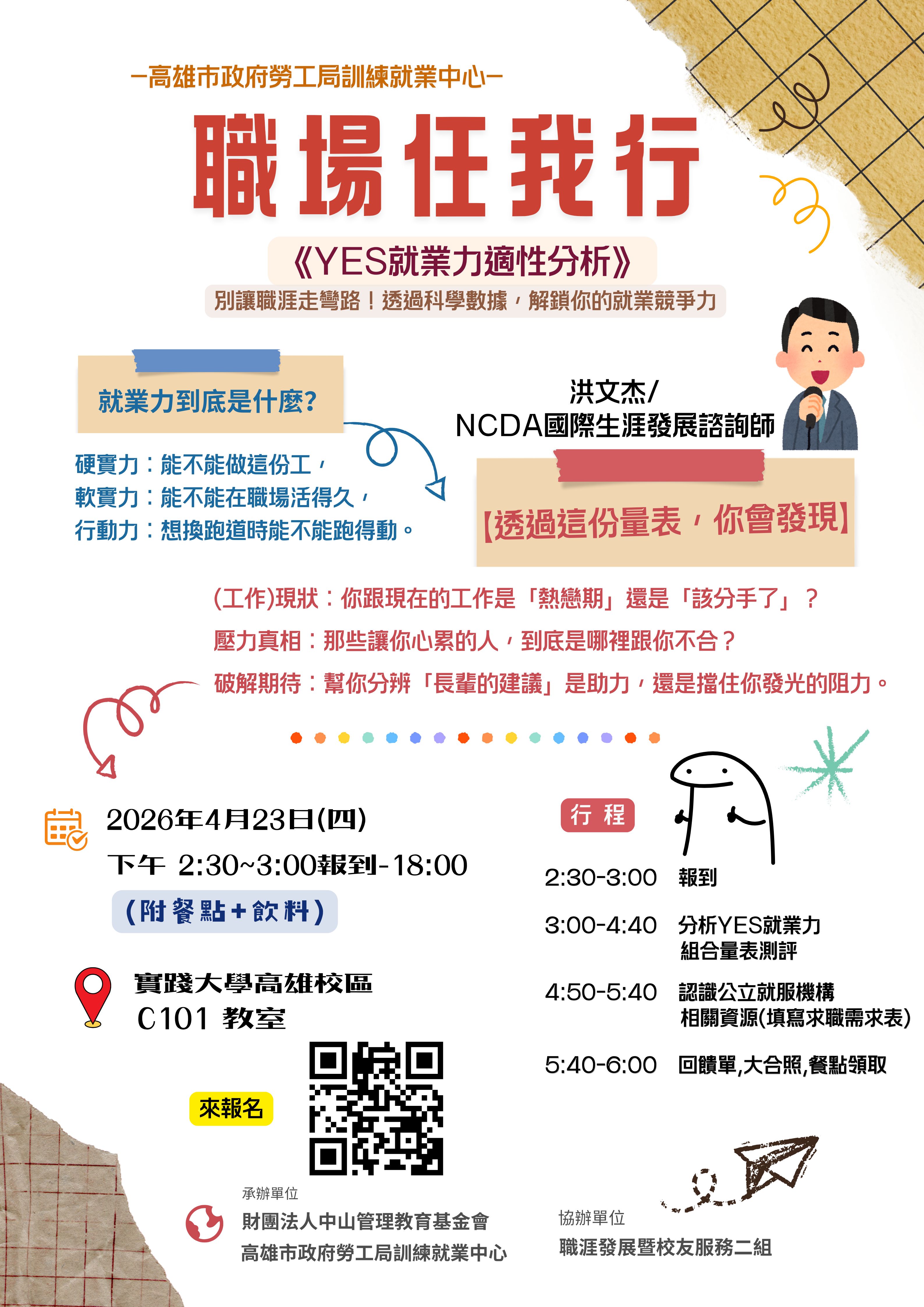 【活動】115職場任我行-勞工局《YES就業力適性分析》,4/23(四) 下午2:30-6:00 (附餐飲)